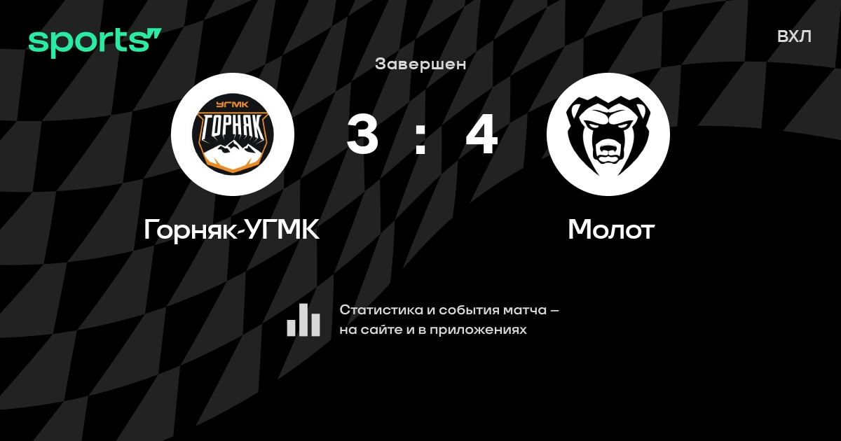 В прошедшем матче в рамках турнира ВХЛ состоялась встреча команд Горняк-УГМК - Молот в городе на стадионе Ledovaya Arena Im. A. Kozitsyna со счетом 3 : 4.