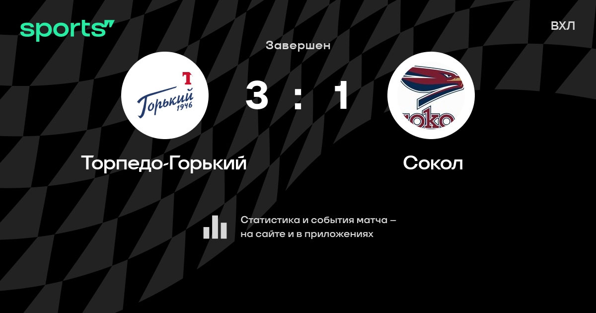 В прошедшем матче в рамках турнира ВХЛ состоялась встреча команд Торпедо-Горький - Сокол в городе Нижний Новгород (Россия) на стадионе Нагорный дворец спорта профсоюзов (вместимость - 5500)