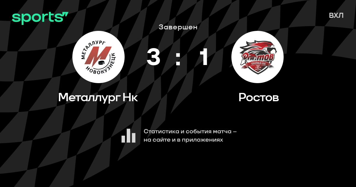 В прошедшем матче в рамках турнира ВХЛ состоялась встреча команд Металлург Нк - Ростов в городе на стадионе Dvorets sporta Kuznetsk Metallurg со счетом 3 : 1.