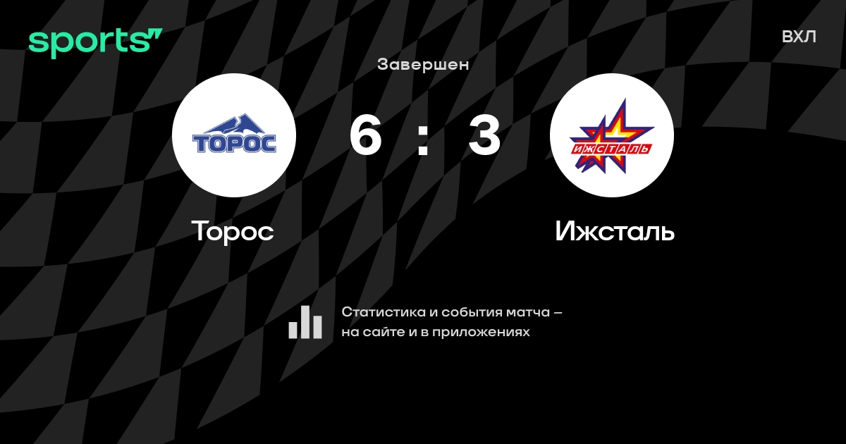 В прошедшем матче в рамках турнира ВХЛ состоялась встреча команд Торос - Ижсталь в городе на стадионе Ledovyy Dvorets со счетом 6 : 3.