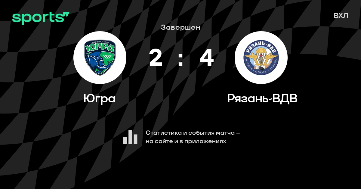 В прошедшем матче в рамках турнира ВХЛ состоялась встреча команд Югра - Рязань-ВДВ в городе на стадионе Arena-Yugra со счетом 2 : 4.