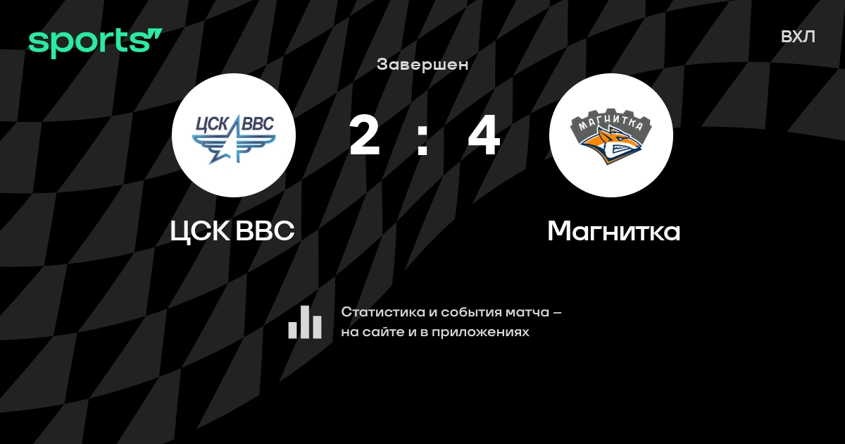 В прошедшем матче в рамках турнира ВХЛ состоялась встреча команд ЦСК ВВС - Магнитка в городе на стадионе Dvorets sporta im. V. S. Vysotskogo со счетом 2 : 4.