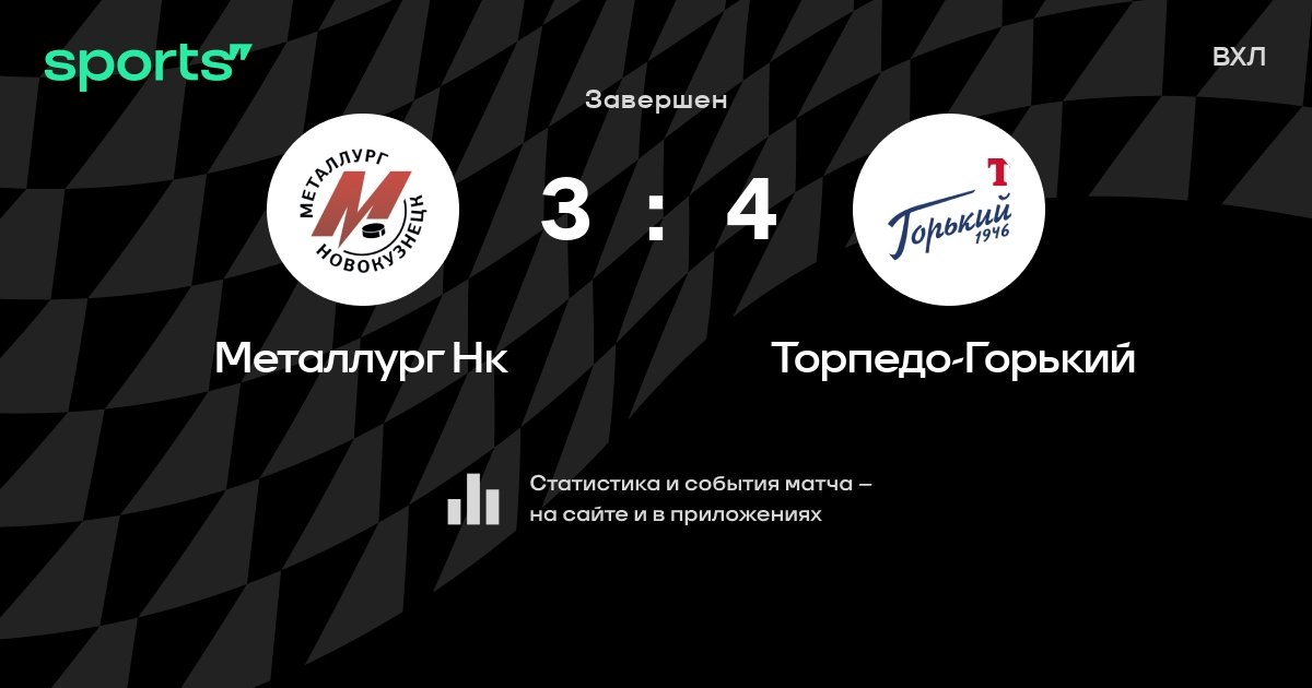 В прошедшем матче в рамках турнира ВХЛ состоялась встреча команд Металлург Нк - Торпедо-Горький в городе на стадионе Dvorets sporta Kuznetsk Metallurg