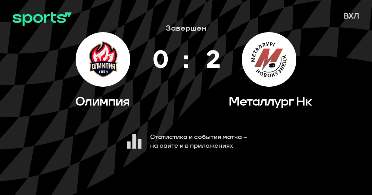 В прошедшем матче в рамках турнира ВХЛ состоялась встреча команд Олимпия - Металлург Нк в городе на стадионе Olimp-Arena со счетом 0 : 2.