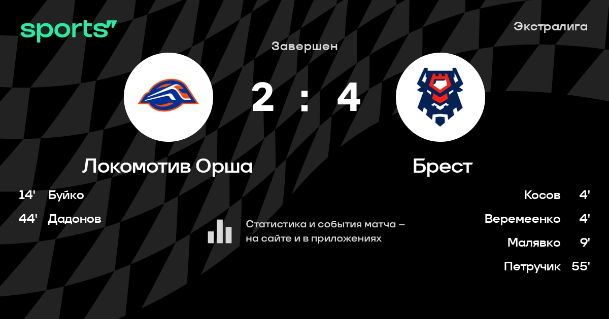 В прошедшем матче в рамках турнира Экстралига состоялась встреча команд Локомотив Орша - Брест в городе Орша (Беларусь) на стадионе Ледовая арена Орша (вместимость - 3500)