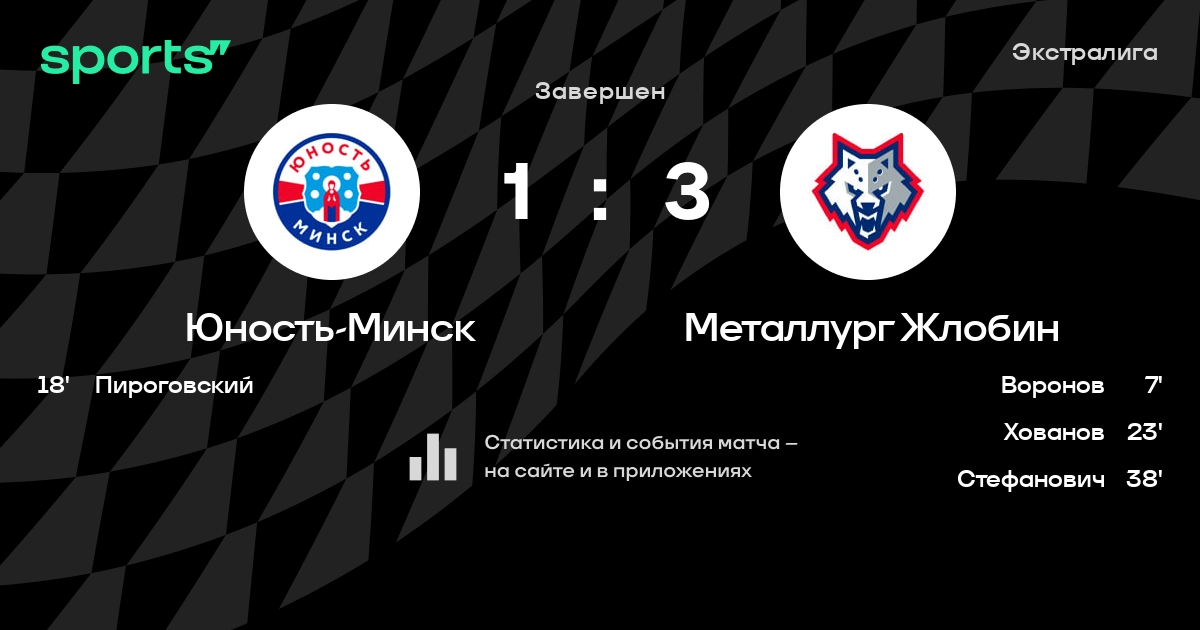 В прошедшем матче в рамках турнира Экстралига состоялась встреча команд Юность-Минск - Металлург Жлобин в городе Минск (Беларусь) на стадионе Чижовка-Арена (вместимость - 9487)