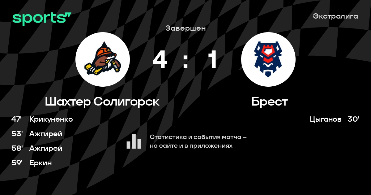 В прошедшем матче в рамках турнира Экстралига состоялась встреча команд Шахтер Солигорск - Брест в городе Солигорск (Беларусь) на стадионе Ледовый дворец спорта Солигорск (вместимость - 1800)