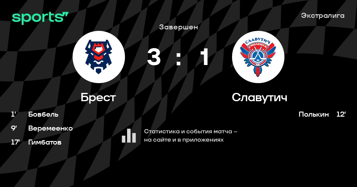 В прошедшем матче в рамках турнира Экстралига состоялась встреча команд Брест - Славутич в городе Брест (Беларусь) на стадионе Ледовый дворец Брест (вместимость - 2000)