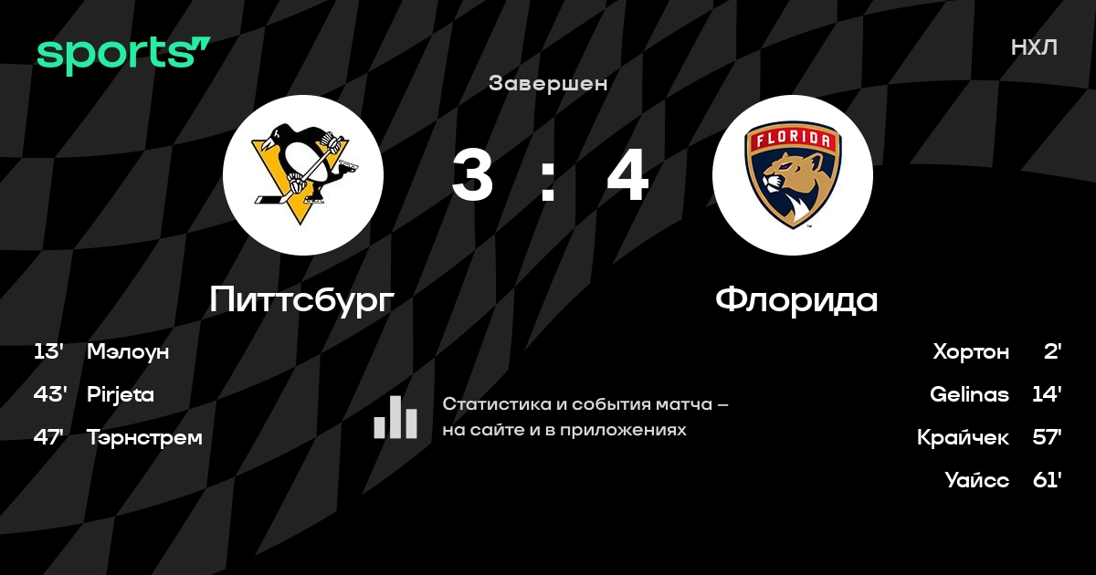 Как прошел матч, смотрите в текстовой трансляции Питтсбург - Флорида на Sports.ru