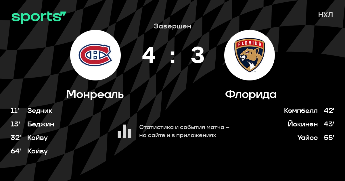 Как прошел матч, смотрите в текстовой трансляции Монреаль - Флорида на Sports.ru