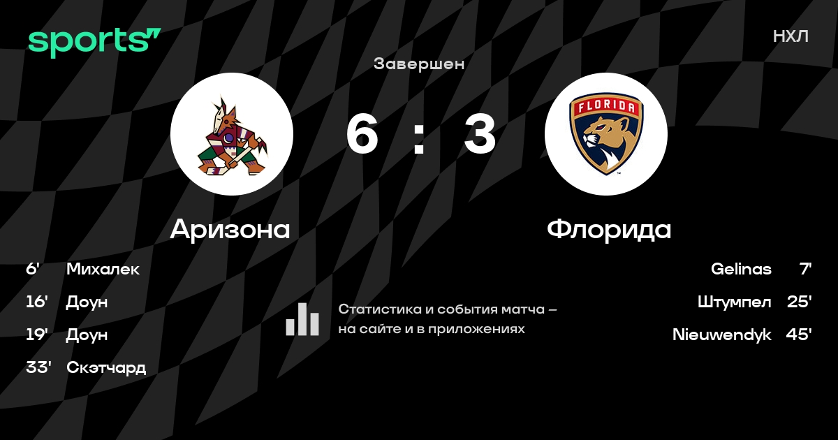 Как прошел матч, смотрите в текстовой трансляции Аризона - Флорида на Sports.ru
