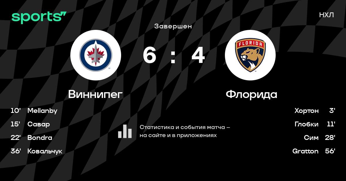 Как прошел матч, смотрите в текстовой трансляции Виннипег - Флорида на Sports.ru