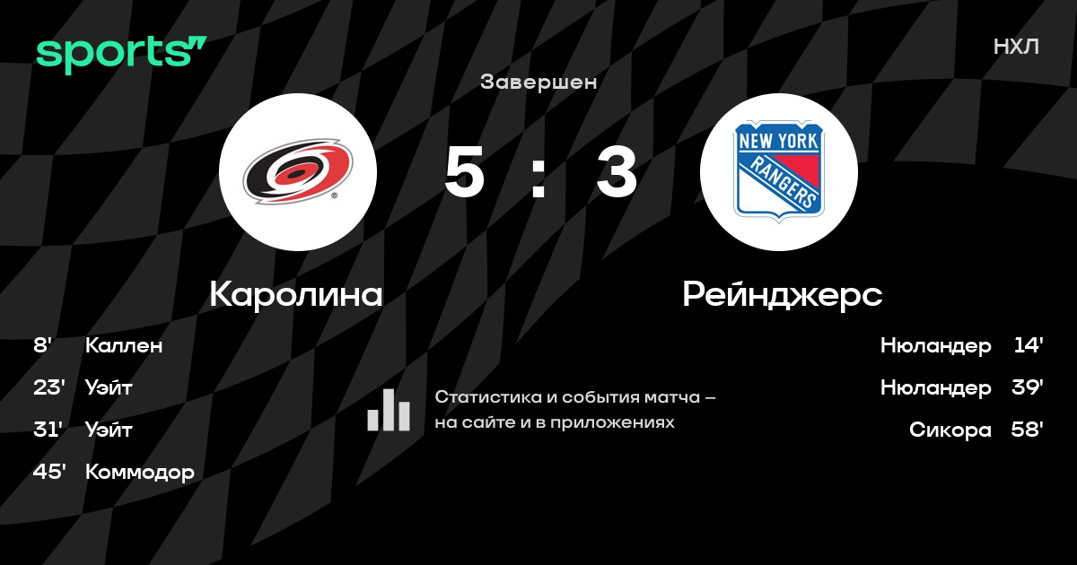 Как прошел матч, смотрите в текстовой трансляции Каролина - Рейнджерс на Sports.ru