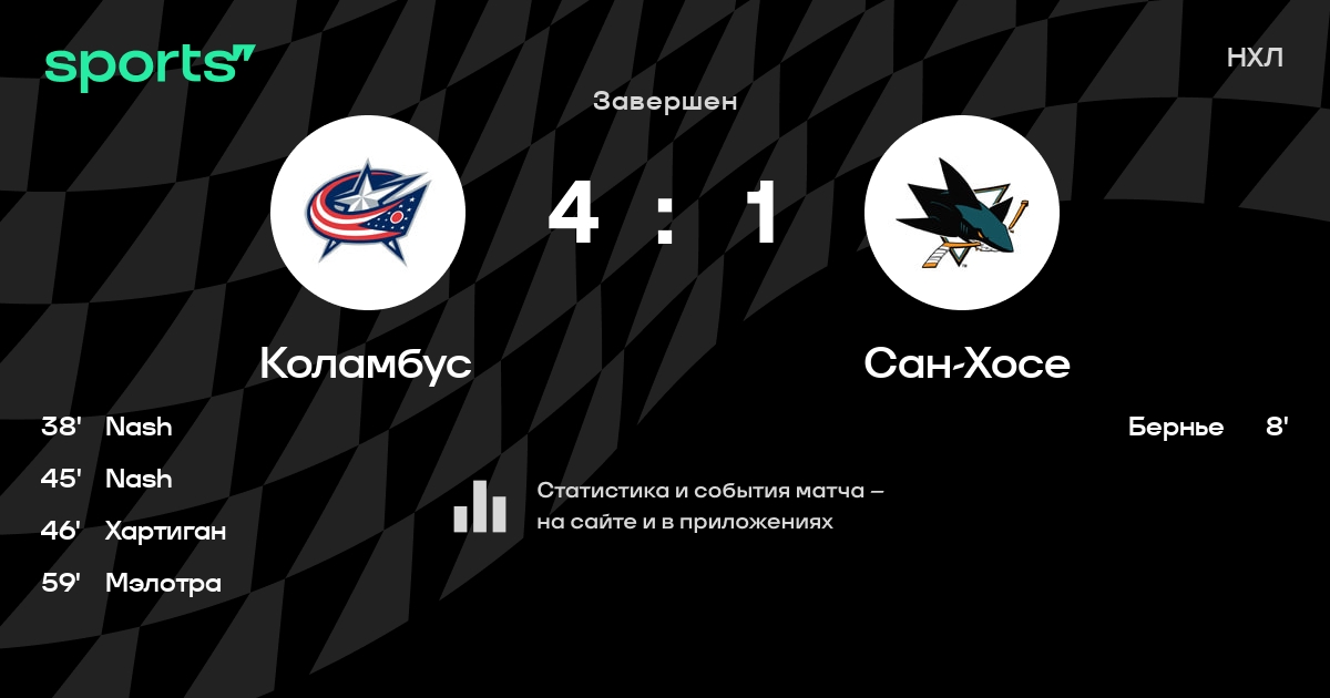 В прошедшем матче в рамках турнира НХЛ состоялась встреча команд Коламбус - Сан-Хосе в городе Коламбус (США) на стадионе Nationwide Arena (вместимость - 18136)