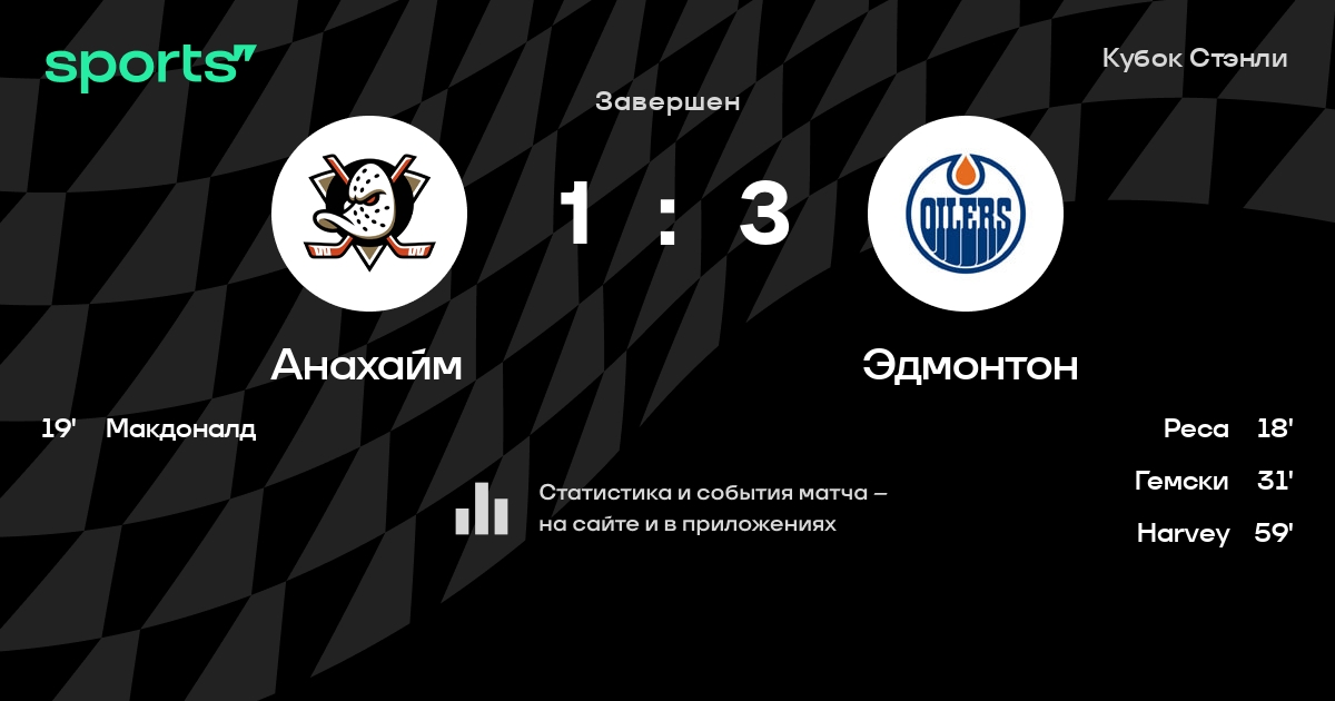 В прошедшем матче в рамках турнира Кубок Стэнли состоялась встреча команд Анахайм - Эдмонтон в городе Анахайм (США) на стадионе Honda Center (вместимость - 17174)