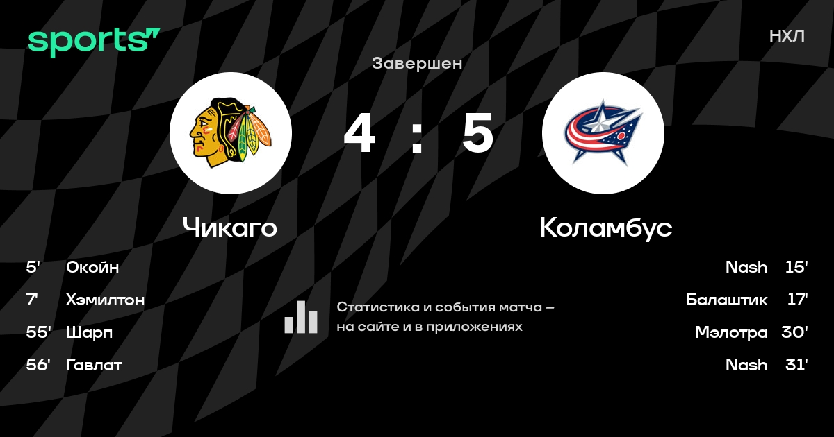 В прошедшем матче в рамках турнира НХЛ состоялась встреча команд Чикаго - Коламбус в городе Чикаго (США) на стадионе United Center (вместимость - 20500) со счетом 4 : 5.