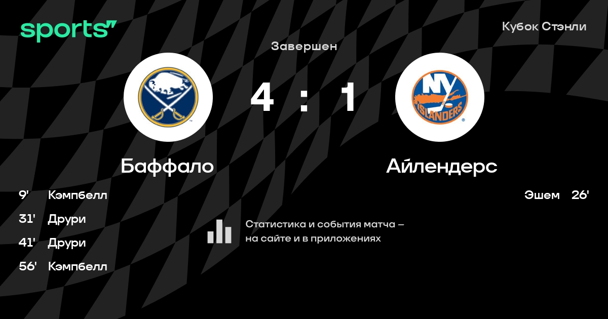 В прошедшем матче в рамках турнира Кубок Стэнли состоялась встреча команд Баффало - Айлендерс в городе Баффало (США) на стадионе KeyBank Center (вместимость - 18690)