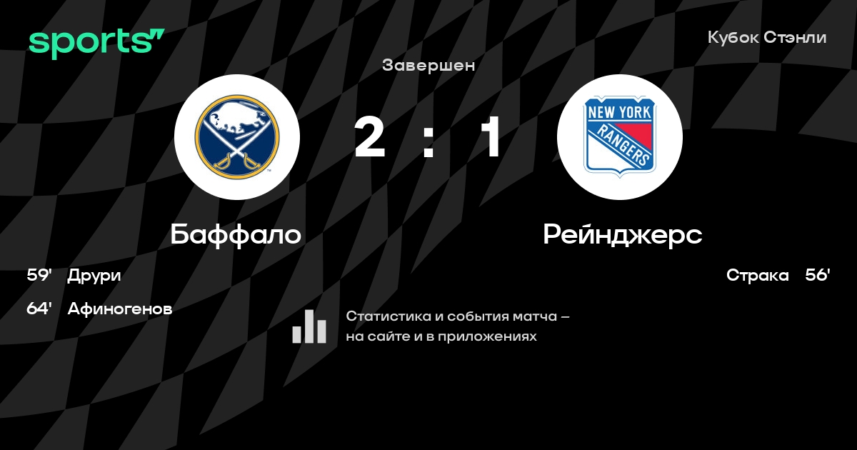 В прошедшем матче в рамках турнира Кубок Стэнли состоялась встреча команд Баффало - Рейнджерс в городе Баффало (США) на стадионе KeyBank Center (вместимость - 18690)