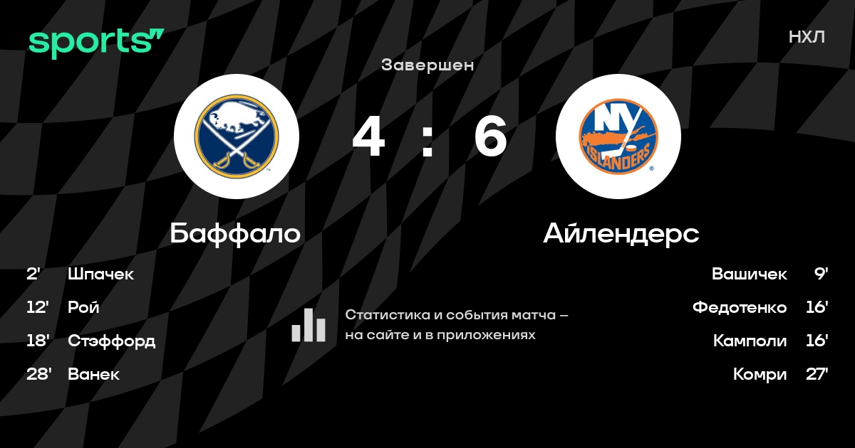 Как прошел матч, смотрите в текстовой трансляции Баффало - Айлендерс на Sports.ru