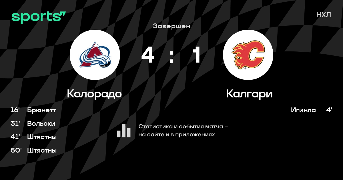 В прошедшем матче в рамках турнира НХЛ состоялась встреча команд Колорадо - Калгари в городе Денвер (США) на стадионе Ball Arena (вместимость - 18007) со счетом 4 : 1.