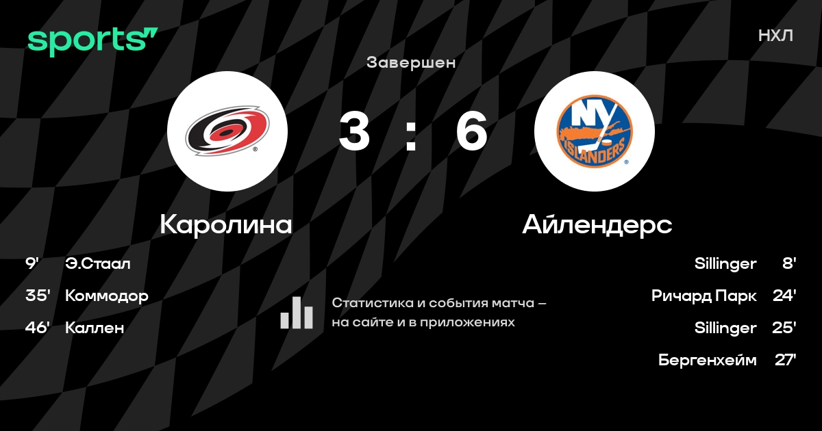 В прошедшем матче в рамках турнира НХЛ состоялась встреча команд Каролина - Айлендерс в городе Роли (США) на стадионе PNC Arena (вместимость - 18680) со счетом 3 : 6.
