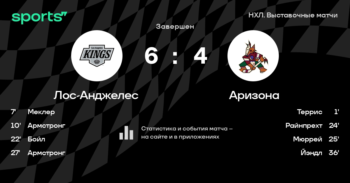 В прошедшем матче в рамках турнира НХЛ. Выставочные матчи состоялась встреча команд Лос-Анджелес - Аризона в городе Лос-Анджелес (США) на стадионе Crypto.com Arena (вместимость - 18118)