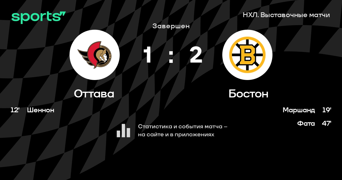 В прошедшем матче в рамках турнира НХЛ. Выставочные матчи состоялась встреча команд Оттава - Бостон в городе Оттава (Канада) на стадионе Canadian Tire Centre (вместимость - 19153)
