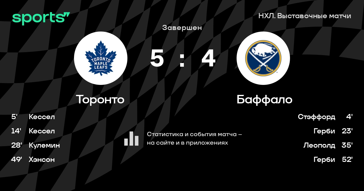 В прошедшем матче в рамках турнира НХЛ. Выставочные матчи состоялась встреча команд Торонто - Баффало в городе Торонто (Канада) на стадионе Scotiabank Arena (вместимость - 18819)