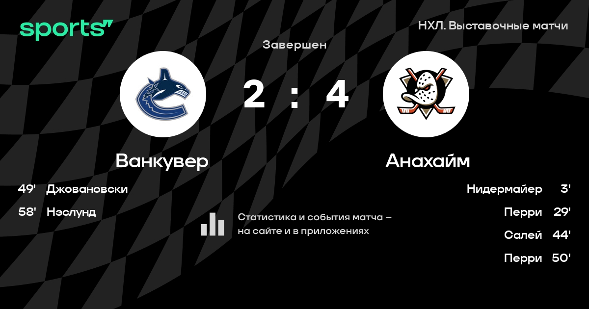 В прошедшем матче в рамках турнира НХЛ. Выставочные матчи состоялась встреча команд Ванкувер - Анахайм в городе Ванкувер (Канада) на стадионе Rogers Arena (вместимость - 18860)