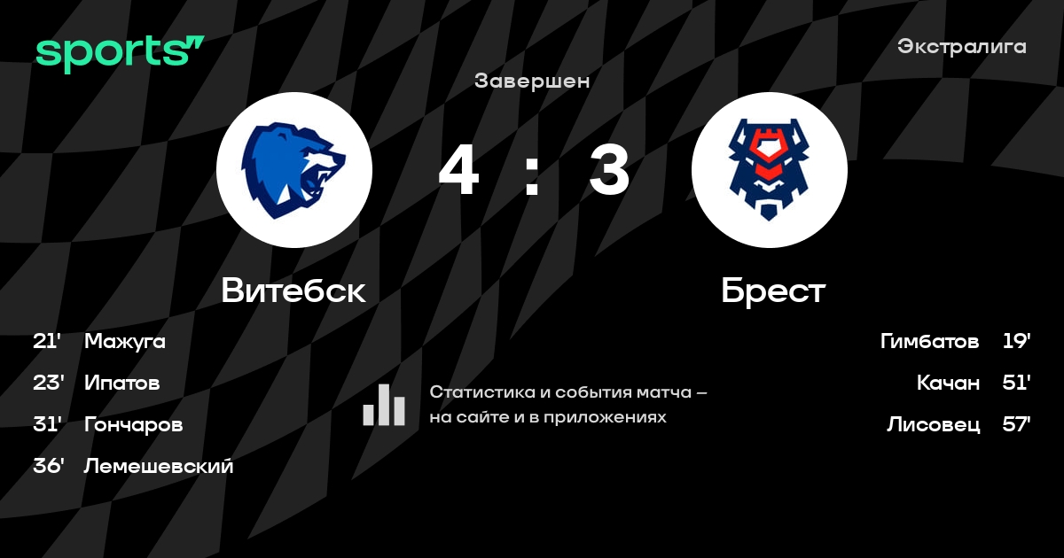 В прошедшем матче в рамках турнира Экстралига состоялась встреча команд Витебск - Брест в городе Витебск (Беларусь) на стадионе Витебский дворец спорта (вместимость - 2000)