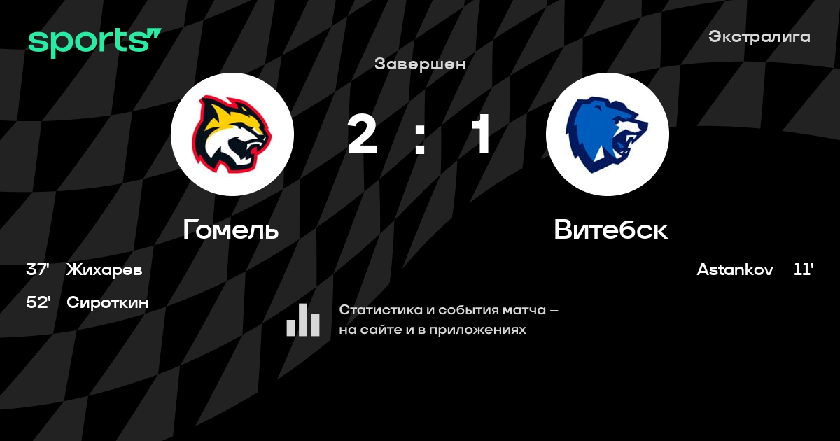 В прошедшем матче в рамках турнира Экстралига состоялась встреча команд Гомель - Витебск в городе Гомель (Беларусь) на стадионе Ледовый дворец Гомель (вместимость - 2700)