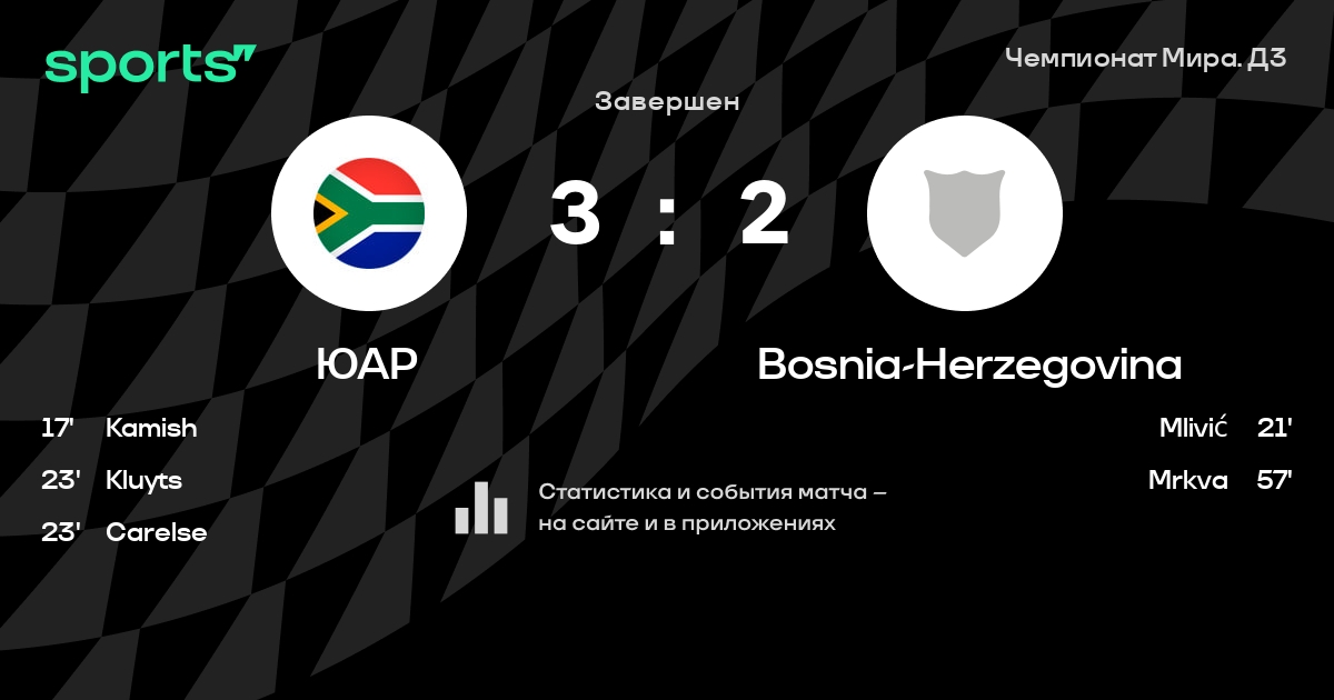 Как прошел матч, смотрите в текстовой трансляции ЮАР - Bosnia-Herzegovina на Sports.ru