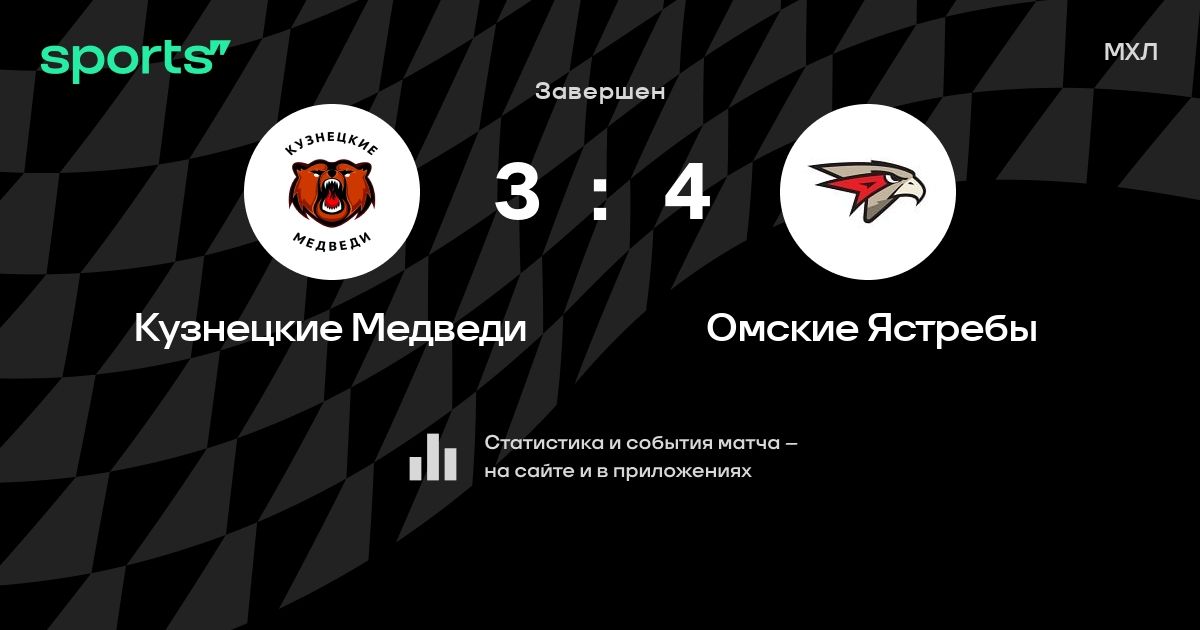 В прошедшем матче в рамках турнира МХЛ состоялась встреча команд Кузнецкие Медведи - Омские Ястребы в городе на стадионе Dvorets sporta Kuznetsk Metallurg