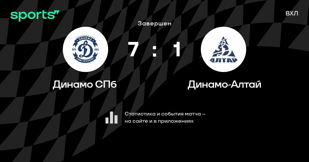 В прошедшем матче в рамках турнира ВХЛ состоялась встреча команд Динамо СПб - Динамо-Алтай в городе на стадионе Yubileyny Sports Palace со счетом 7 : 1.