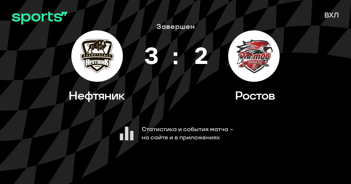 В прошедшем матче в рамках турнира ВХЛ состоялась встреча команд Нефтяник - Ростов в городе на стадионе Dvorets Sporta Yubileynyy со счетом 3 : 2.
