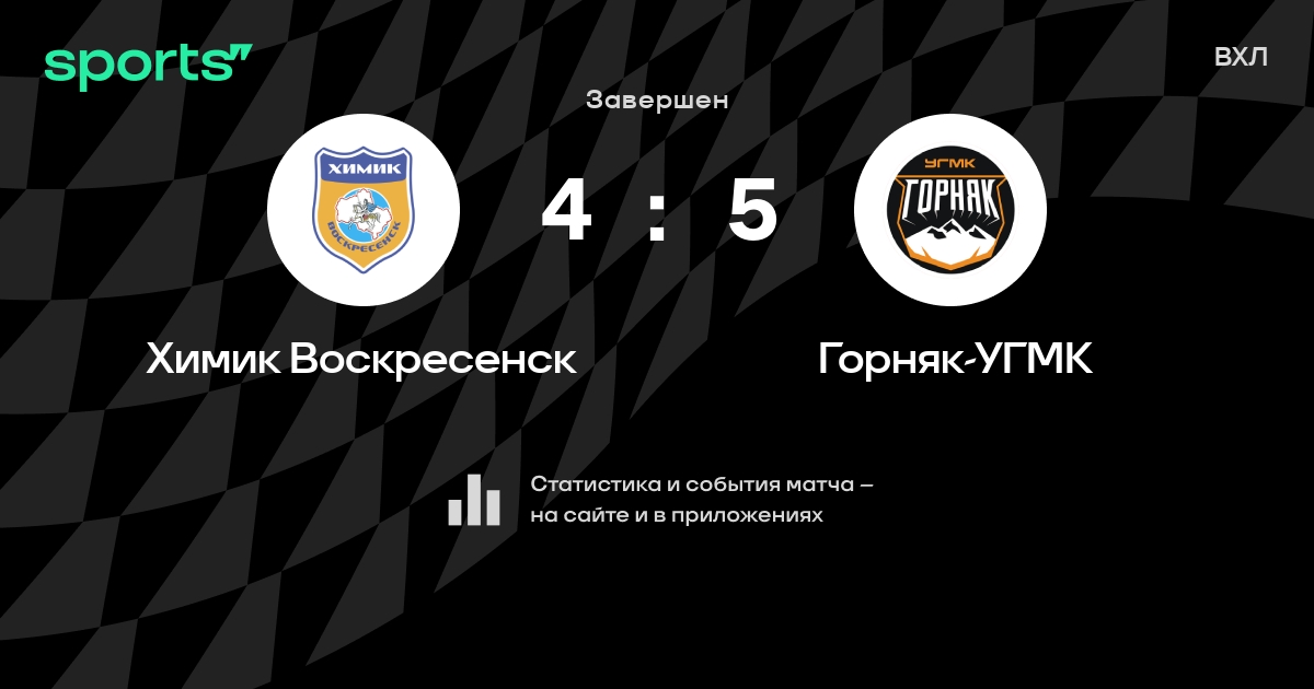 В прошедшем матче в рамках турнира ВХЛ состоялась встреча команд Химик Воскресенск - Горняк-УГМК в городе на стадионе Podmoskovie Ice Palace
