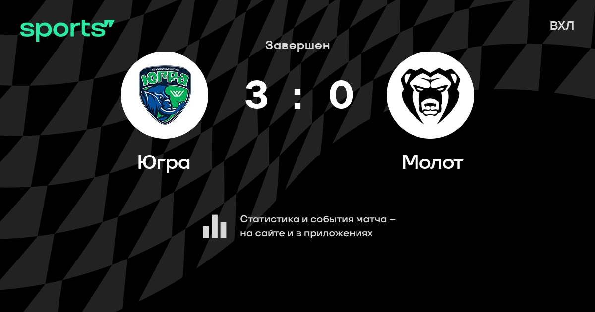 В прошедшем матче в рамках турнира ВХЛ состоялась встреча команд Югра - Молот в городе на стадионе Arena-Yugra со счетом 3 : 0.