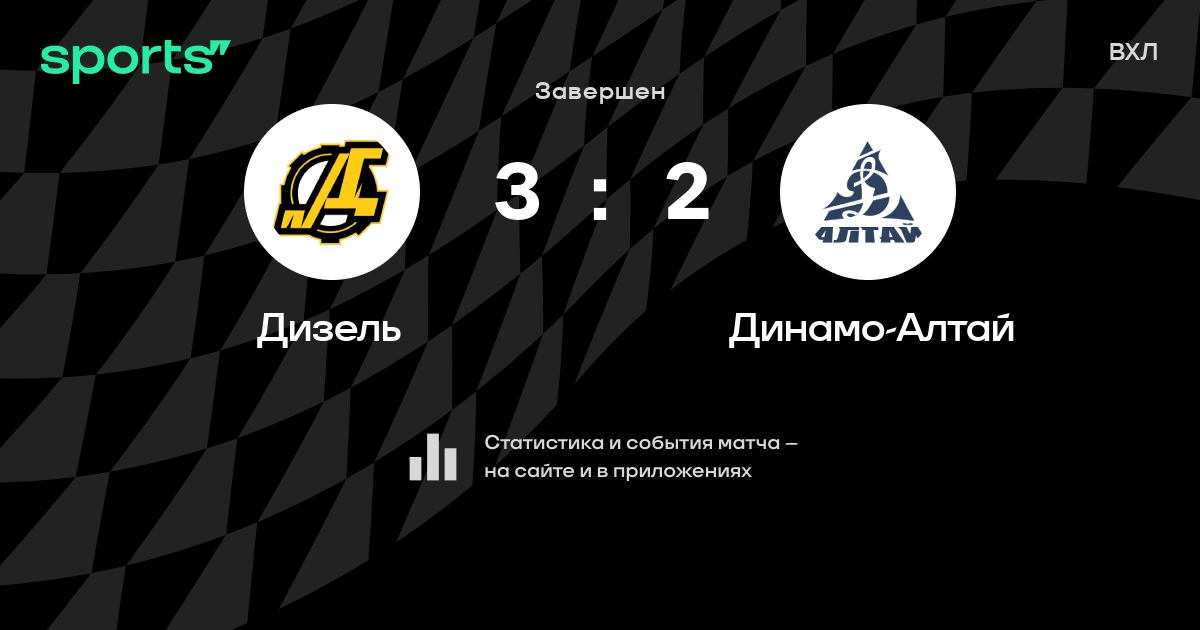 В прошедшем матче в рамках турнира ВХЛ состоялась встреча команд Дизель - Динамо-Алтай в городе на стадионе Diesel-Arena со счетом 3 : 2.