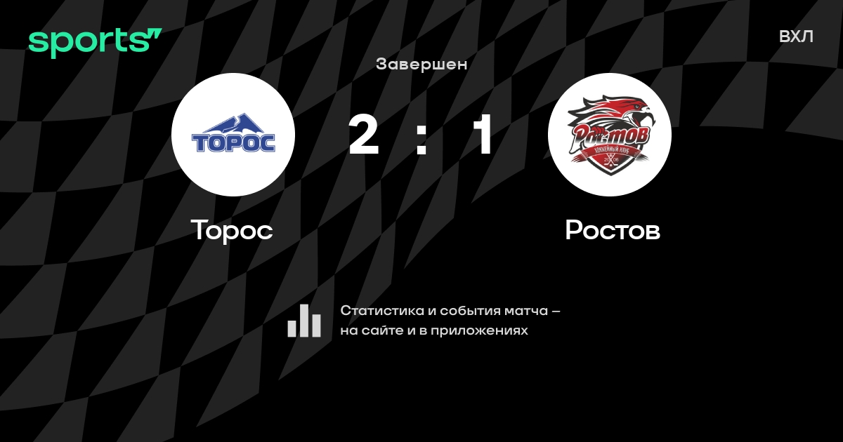 В прошедшем матче в рамках турнира ВХЛ состоялась встреча команд Торос - Ростов в городе на стадионе Ledovyy Dvorets со счетом 2 : 1.