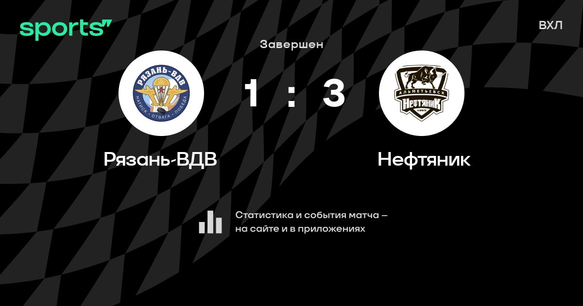 В прошедшем матче в рамках турнира ВХЛ состоялась встреча команд Рязань-ВДВ - Нефтяник в городе на стадионе The Palace of sports Olimpiyskiy со счетом 1 : 3.