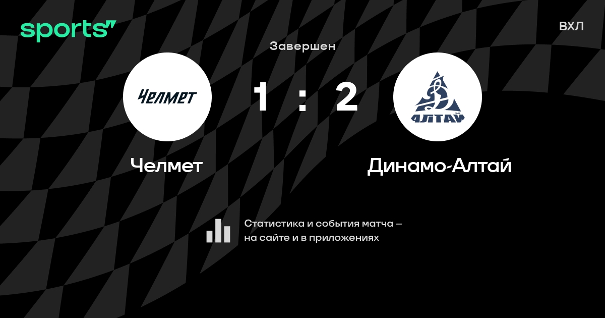 В прошедшем матче в рамках турнира ВХЛ состоялась встреча команд Челмет - Динамо-Алтай в городе на стадионе Sports Palace Yunost со счетом 1 : 2.