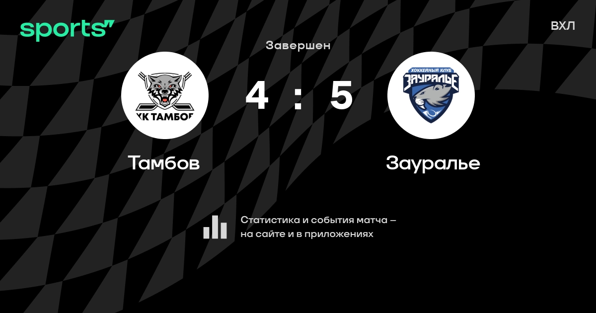 В прошедшем матче в рамках турнира ВХЛ состоялась встреча команд Тамбов - Зауралье в городе на стадионе Sports Palace Crystal со счетом 4 : 5.