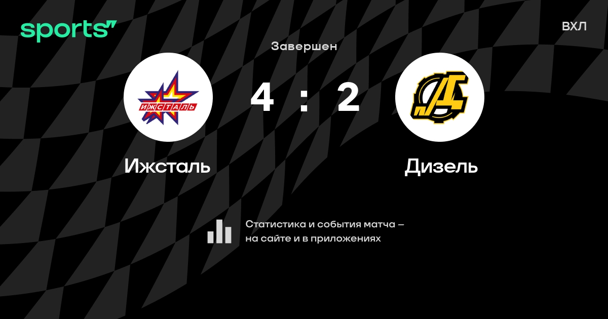 В прошедшем матче в рамках турнира ВХЛ состоялась встреча команд Ижсталь - Дизель в городе на стадионе Ledovyy Dvorets Izhstal со счетом 4 : 2.