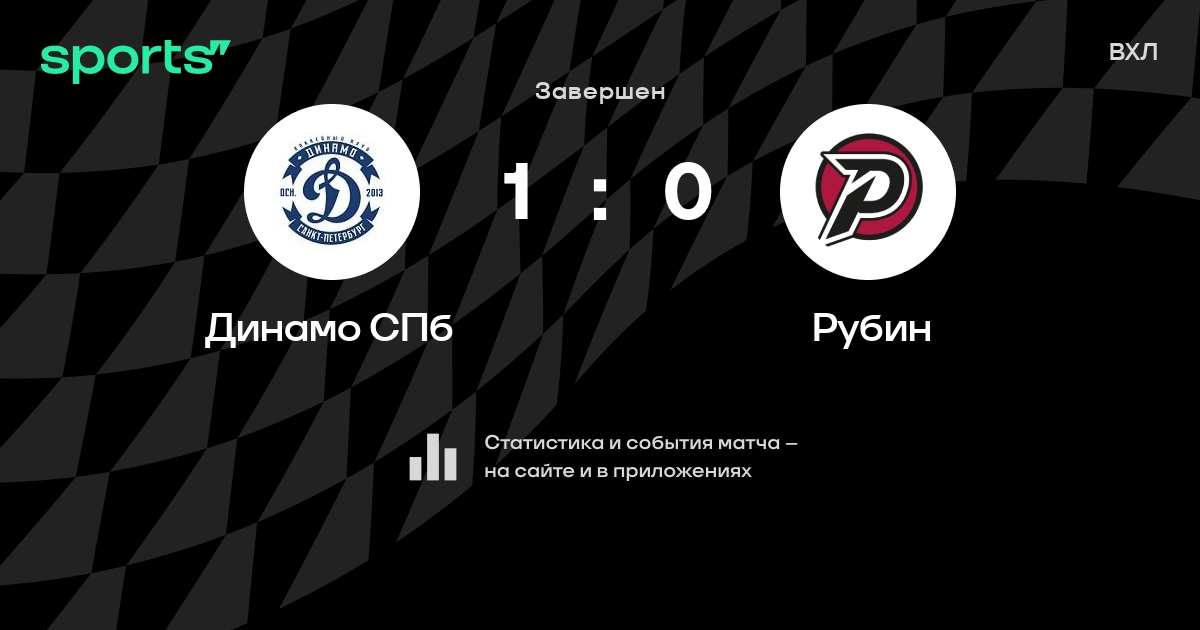 В прошедшем матче в рамках турнира ВХЛ состоялась встреча команд Динамо СПб - Рубин в городе на стадионе Yubileyny Sports Palace со счетом 1 : 0.