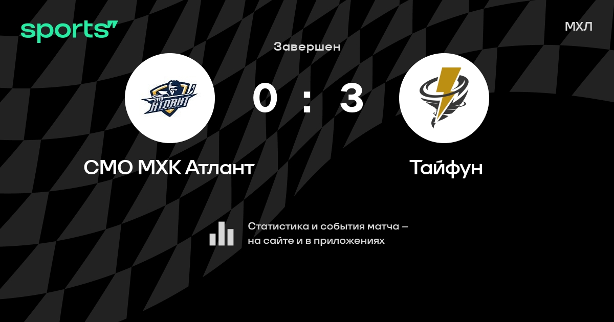 В прошедшем матче в рамках турнира МХЛ состоялась встреча команд СМО МХК Атлант - Тайфун в городе Мытищи (Россия) на стадионе Арена-Мытищи (вместимость - 7000)