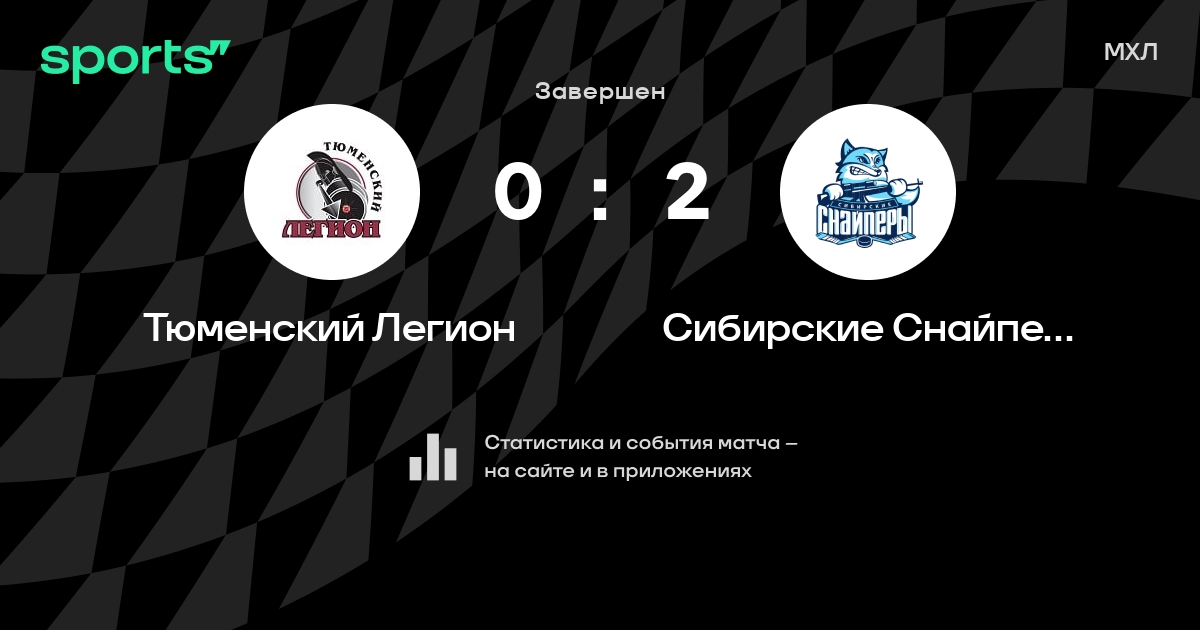 В прошедшем матче в рамках турнира МХЛ состоялась встреча команд Тюменский Легион - Сибирские Снайперы в городе на стадионе Ledovyy Dvorets Sporta Im. N.v. Parysheva
