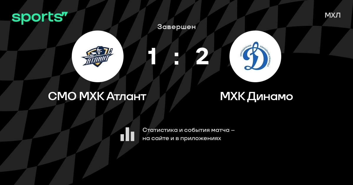 В прошедшем матче в рамках турнира МХЛ состоялась встреча команд СМО МХК Атлант - МХК Динамо в городе Мытищи (Россия) на стадионе Арена-Мытищи (вместимость - 7000)