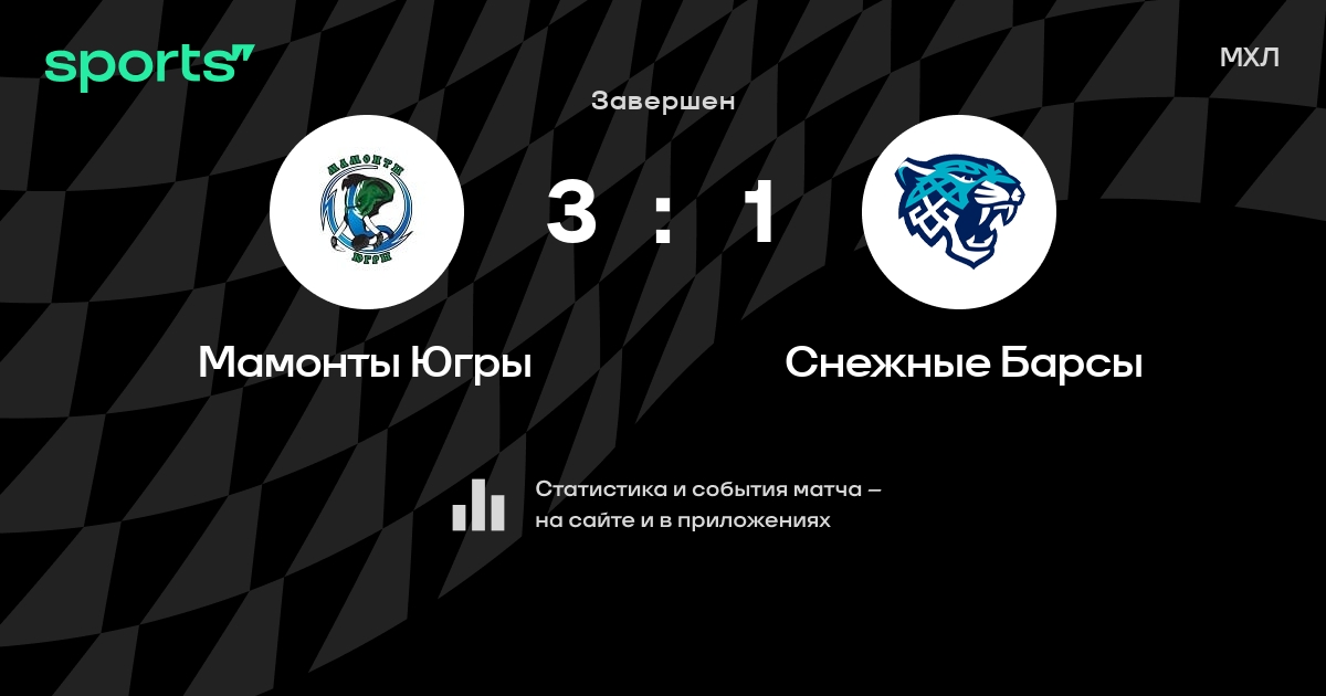 В прошедшем матче в рамках турнира МХЛ состоялась встреча команд Мамонты Югры - Снежные Барсы в городе на стадионе Ledoviy Dvorets Sporta со счетом 3 : 1.
