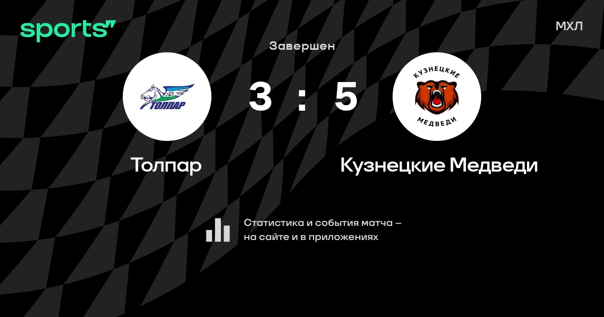 В прошедшем матче в рамках турнира МХЛ состоялась встреча команд Толпар - Кузнецкие Медведи в городе на стадионе Dvorets sporta Salavat Yulaev со счетом 3 : 5.