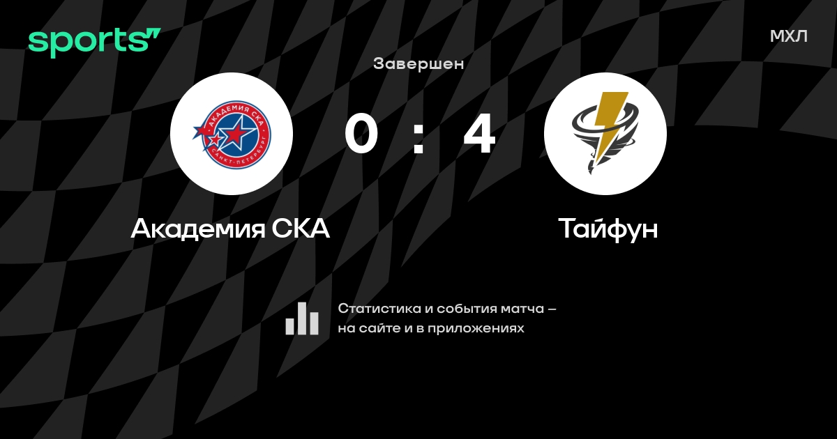 В прошедшем матче в рамках турнира МХЛ состоялась встреча команд Академия СКА - Тайфун в городе на стадионе Hockey City со счетом 0 : 4.